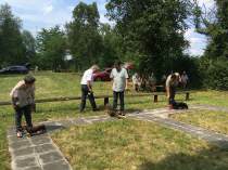 Als das Aufbauteam am Sonntagmorgen um 9.00 Uhr auf unserem Übungsplatz eintraf, um für die Zuchtschau alles vorzubereiten, herrschte Weltuntergangsstimmung. Es regnete in Strömen und alle, die nicht zufällig eine Regenjacke im Auto hatten, waren im Nu bis auf die Knochen nass. Die Stimmung war schnell auf dem Nullpunkt, wie sollte bei einem solchen Wetter eine Zuchtschau stattfinden! Aber Petrus hatte ein Einsehen und der Regen machte einem strahlenden Sonnenschein Platz.