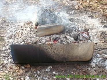Die von unserem Vereinsmetzger Dieter Pfarr zubereiteten Fleischpäckchen wurden in der Glut gegart. Zahlreiche hungrige Mägen konnten im Voraus eine Portion Schippekäs genießen, die Gerda Cocek im Ofen zubereitet hatte.