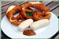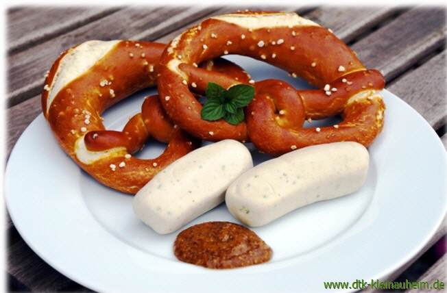 Fleißige Hände hatten frische Laugenstangen gebacken und Radieschen vorbereitet. Die Würste badeten ab 10:30 Uhr in warmem Wasser und warteten darauf, von den anwesenden Mitglieder und Gäste zusammen mit süßem Senf, den Laugenstangen und den Radieschen verspeist zu werden. 25 Paar Würste waren bald aufgegessen und eine fröhliche Runde genoss zünftiges Weißbier oder anderen Getränke. Der bekannte „Grüne“ unseres Mitgliedes Stefan Machers rundete das Ereignis ab.
