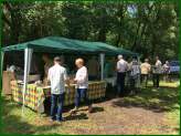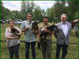 Wie jedes Jahr gab es beim Aufbau der Zelte ein kurzes, tiefes Luftholen, zumal wir erstmalig für den Richterplatz ein neues, großes Zelt mit aufbauten. Aber mit viel Humor standen die Zelte im Nu. Ab 11.30 Uhr kamen die ersten Besucher und Aussteller. Wie immer war das Grillteam bestens vorbereitet und konnte mit Würstchen, Steaks, Kaffee und Kuchen den Hunger der Anwesenden stillen. Mit dem Auftritt unserer Bläsergruppe konnte die Zuchtschau starten. Unser diesjähriger Richter war Herr Artur Lewantowitsch.