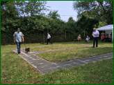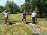 Als das Aufbauteam am Sonntagmorgen um 9.00 Uhr auf unserem Übungsplatz eintraf, um für die Zuchtschau alles vorzubereiten, herrschte Weltuntergangsstimmung. Es regnete in Strömen und alle, die nicht zufällig eine Regenjacke im Auto hatten, waren im Nu bis auf die Knochen nass. Die Stimmung war schnell auf dem Nullpunkt, wie sollte bei einem solchen Wetter eine Zuchtschau stattfinden! Aber Petrus hatte ein Einsehen und der Regen machte einem strahlenden Sonnenschein Platz.