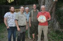 Da die mehr als 30 Besucher zum Beginn der Veranstaltung um 18:00 Uhr bereits Hunger und Durst mitgebracht hatten, eröffneten unsere Jagdhornbläser den Abend erst nach der ersten Runde Steaks, Würstchen und Bauchscheiben, die von unserem Mitglied Dieter Pfarr vorbereitet und vom Grillmeister Ewald Käsemann fachgerecht zubereitet wurden.