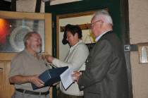Als nächstes gab es ein Präsent für Gerda und Wolfgang Cocek, unsere Hüttengeister, und für unsere Rentnergang einen Gutschein für ein gemeinsames Frühstück, damit sie weiterhin gestärkt (und motiviert) jeden ersten Dienstag die Platzarbeiten in Angriff nehmen können. Claus Walter erhielt ein Geschenk für die gute Pflege unserer Homepage.