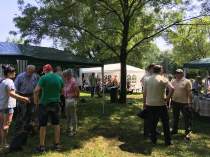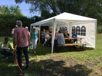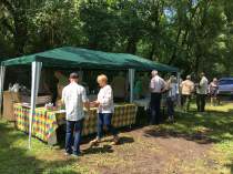 Wie jedes Jahr gab es beim Aufbau der Zelte ein kurzes, tiefes Luftholen, zumal wir erstmalig für den Richterplatz ein neues, großes Zelt mit aufbauten. Aber mit viel Humor standen die Zelte im Nu. Ab 11.30 Uhr kamen die ersten Besucher und Aussteller. Wie immer war das Grillteam bestens vorbereitet und konnte mit Würstchen, Steaks, Kaffee und Kuchen den Hunger der Anwesenden stillen. Mit dem Auftritt unserer Bläsergruppe konnte die Zuchtschau starten. Unser diesjähriger Richter war Herr Artur Lewantowitsch.