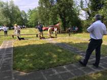 Als das Aufbauteam am Sonntagmorgen um 9.00 Uhr auf unserem Übungsplatz eintraf, um für die Zuchtschau alles vorzubereiten, herrschte Weltuntergangsstimmung. Es regnete in Strömen und alle, die nicht zufällig eine Regenjacke im Auto hatten, waren im Nu bis auf die Knochen nass. Die Stimmung war schnell auf dem Nullpunkt, wie sollte bei einem solchen Wetter eine Zuchtschau stattfinden! Aber Petrus hatte ein Einsehen und der Regen machte einem strahlenden Sonnenschein Platz.