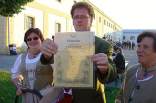 Am darauf folgenden Tag fuhren wir über Hainburg a. Donau zur österr. Staatsgrenze, um unsere Stadtführerin für den Besuch von Bratislava aufzunehmen. Nach wenigen Kilometern erreichten wir die Stadt und fuhren zunächst mit dem Bus zu den wichtigsten Sehenswürdigkeiten wie Burg, Botschaftsviertel, russisches Ehrenmal (hier hat man die beste Aussicht auf die Stadt), Präsidentenpalais und zurück zur Burg. An der Burg werden zurzeit große Anstrengungen unternommen, alles wieder herzurichten und nutzbar zu machen. Nach einer Pause fuhren wir zurück zur Altstadt um diese per Pedes zu erkunden. Unsere Stadtführerin konnte sehr lebendig von ihrer Stadt erzählen, denn Bratislava oder bis 1918 auch Pressburg genannt, war während der Türkenbesetzung ungarische Hauptstadt. Bratislava ist seit 1992 Hauptstadt der Slowakischen Republik und mit ca. 430 000 Einwohnern die größte Stadt der Slowakei. Am Ende des Stadtausfluges ging es zurück zum Hotel und einem verspäteten Mittagessen. Danach hieß es, umziehen in den Bläserdress und Abfahrt zum Schloss Hof, denn dort erwartete uns das Ergebnis unseres Auftrittes. Um die Zeit zu überbrücken, lud der weitläufige Schlosspark zu einem Spaziergang ein und wir hörten noch einige Gruppen mit ihren Vorträgen. Endlich, gegen 18:00 Uhr füllte sich so langsam der Ehrenhof des Schlosses zur Bekanntgabe der Platzierungen. Nach einigen, gemeinsam vorgetragenen Signalen wurden die Platzierungen in den jeweiligen Klassen bekannt gegeben. Wo waren die DTK-Bläser gelandet? Hat es bei dieser großen Konkurrenz für Gold gereicht? Es hat, denn unser Hornmeister Claus Walter hat mit viel Geduld 12 Bläser als eine Einheit bestens auf diesen Wettbewerb vorbereitet. Mit Urkunde und goldenem Bläserabzeichen ging es zurück ins Quartier. Aller Spannungen entledigt, haben wir gemeinsam bis spät in die Nacht gefeiert.