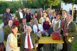 Schloss HOF und alle anderen Schlösser wie Marchegg, Orth, Niederweiden oder Eckartsau liegen alle in der Region Marchfeld und Schloss HOF ist die größte Anlage auf dem Lande. Vom Parkplatz aus führte der Weg zunächst durch den Meierhof, bevor man zur eigentlichen Schlossanlage gelangte, ein gewaltiger Anblick. Über eine Rampe, die um einen Springbrunnen führte, gelangte man zum Austragungsort des Bewerbes. Pünktlich um 15:00 Uhr begann der Wettbewerb. Unser Auftritt war gegen 16:00 Uhr als neunte Gruppe an diesem Tag. Nach einem Vorsignal warteten wir auf das Zeichen des Richterobmannes und dann bliesen wir die geforderten Signale der Reihe nach vor. Nach dem letzten Ton und dem Ausmarsch vom Wettbewerbsplatz war die Erleichterung bei allen spürbar. Am Weinstand angelangt, gab es für jeden ein Gläschen Wein. Nun konnten wir in aller Lockerheit den anderen Gruppen aus Ungarn und dem Gastgeberland zuhören. Danach machten wir uns langsam auf den Weg, um pünktlich das Abendessen einzunehmen, denn für 20:00 Uhr hatte unsere Gastgeberin Plätze beim Heurigen-Wirt bestellt. So hatten wir einen schönen Ausklang des Tages.