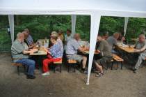 Um 09.00 Uhr trafen die Helfer zum Aufbau ein. Obwohl kein Regen angesagt war, haben wir uns entschieden, das Zelt aufzubauen. So ergibt sich für die eintreffenden Besucher gleich ein Anblick eines Festes. Dank unserer Routine stand das Zelt in kurzer Zeit. |