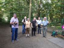 Da die mehr als 30 Besucher zum Beginn der Veranstaltung um 18:00 Uhr bereits Hunger und Durst mitgebracht hatten, eröffneten unsere Jagdhornbläser den Abend erst nach der ersten Runde Steaks, Würstchen und Bauchscheiben, die von unserem Mitglied Dieter Pfarr vorbereitet und vom Grillmeister Ewald Käsemann fachgerecht zubereitet wurden. |