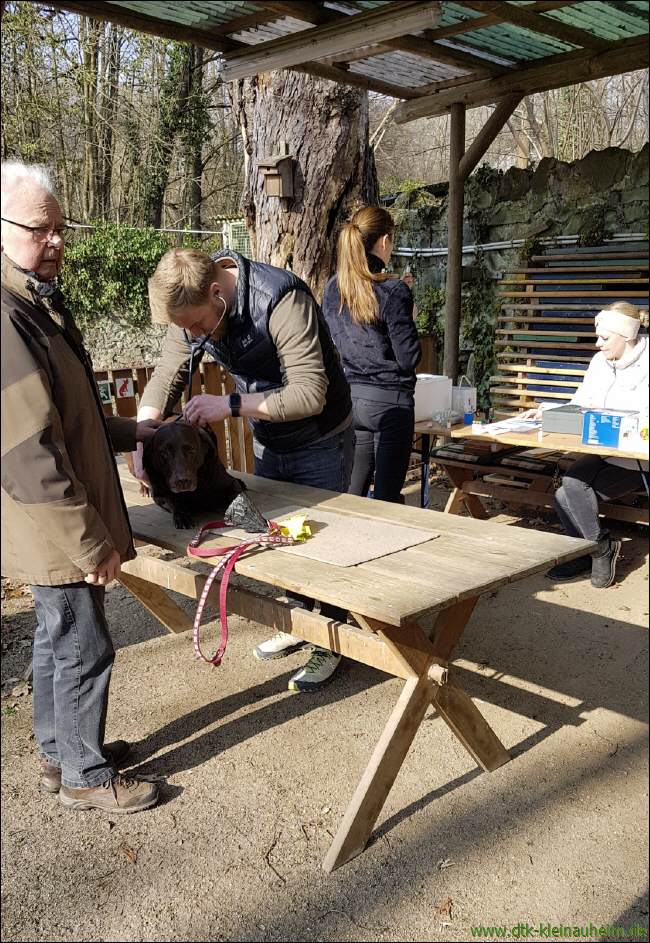 Bei strahlendem Frühlingswetter nahm Tierarzt Clemens Freisen die Impfung vor, nachdem er die Hunde sorgfältig untersucht hatte. |
