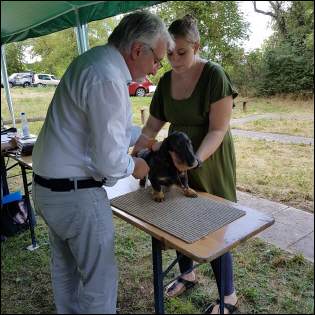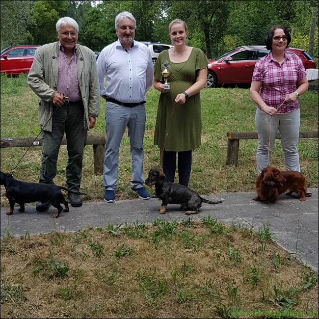 Wir hatten wieder alle Haararten und auch die Größen Standard und Zwerg dabei. Nach den einzelnen Bewertungen wurde der schönste Hund jeder Haarart bestimmt. Die drei schönsten ihrer Haarart traten danach zur Wahl des schönsten Teckel der Ausstellung an. |