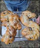 Wir hatten die Freude Otto Grünewald für 60 Jahre Mitgliedschaft und Milo Kaluza für 25 Jahre zu ehren. Die Agility Gruppe des DTK Offenbach-Mühlheim zeigte ein tolles Programm mit Ihren Teckeln, Mitglieder aus den Nachbarschaftsgruppen Kinzigtal-Wächtersbach, Friedberg-Bad Nauheim, Ahrtal-Bad Schwalbach und Schotten-Niddagrund feierten mit uns. Die Bläsergruppe, „Alte Schachtel-Show“ und „Heiner und die Dackelband“ sorgten für ausgelassene Stimmung, der Foodtruck kam bestens an, fröhliche Gesichter und Feierlaune pur! Viele Dackel aller Größen und Haararten tummelten sich auf unserem Gelände. Damit wir unser Fest auch dokumentieren können, sauste Andrea Keller durch das Geschehen und machte für uns die Fotos. Moni Raab, sonst bekannt für ihre genialen Nussecken, hat uns zum Jubiläum einen Hefezopf in Form der 75 gebacken, der noch am selben Abend aufgegessen wurde.