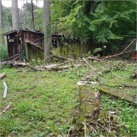 Uns war klar, dass auf Grund des Aussehens der hinter unserem Gelände stehenden Bäume mit einem Bruch zu rechnen war, da diese Bäume zum Teil ständig im Wasser standen.