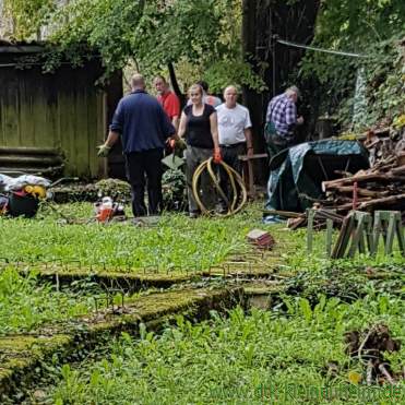 Zum Glück kann man sich auf gemeinsame Aktionen unserer Mitglieder verlassen. Ein Termin zur Beseitigung der gröbsten Schäden war schnell gefunden. Am 1.9. trafen sich Freiwillige und begannen mit der Arbeit. Mit Hilfe von Geräten, die Klaus Weyland bereit gestellt hatte, wurden die Äste beseitigt und zerkleinert. Diese werden bei den nächsten Lakefleischessen verbrannt.