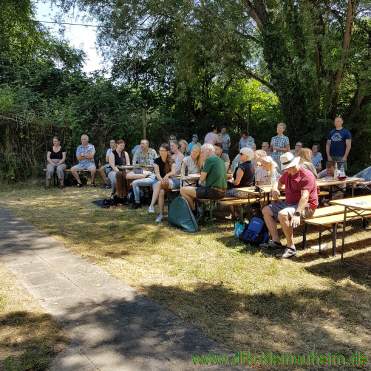 Wie jedes Jahr gab es beim Aufbau der beiden anderen Zelte ein kurzes, tiefes Luftholen. Aber mit viel Humor standen diese im Nu. Ab 11.30 Uhr kamen die ersten Besucher und Aussteller. Wie immer war das Grillteam bestens vorbereitet und konnte mit Würstchen, Steaks und gekühlten Getränken die Anwesenden bedienen. Zusätzlich hatten sich in diesem Jahr mehrere Mitglieder und Gäste bereit erklärt, Kuchen zu spenden. Auch die Kuchen wurden gerne verzehrt.
