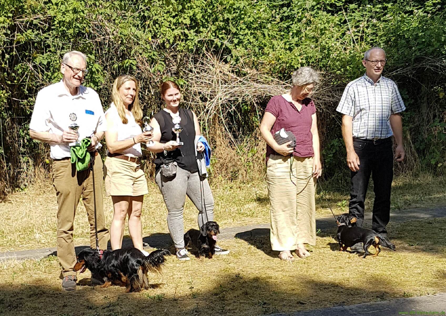 Wir hatten wieder alle Haararten und auch die Größen Standard und Zwerg dabei. Nach den einzelnen Bewertungen wurde der schönste Hund jeder Haarart bestimmt. Die drei schönsten ihrer Haarart traten danach zur Wahl des schönsten Teckel der Ausstellung an.