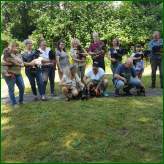 4 Rauhhaar, 2 Kurz und 3 Langhaarteckel wurden nacheinander vorgestellt. Die Besitzer mussten etliche Runden im Ring drehen, denn die Richterin ging sehr ausführlich auf jeden einzelnen ein und erklärte dem Publikum sehr genau die Vorzüge, auf was zu achten ist und wie ihre Beurteilung zu Stande kommt. Publikum und selbst langjährige Teckelbesitzer konnten noch einiges an Information gewinnen. Die Stimmung bei Besuchern, Ausstellern und den unermüdlichen Helfern war bestens. Am Nachmittag waren unser Grillteam Stefan und Markus restlos ausverkauft, Christine, unsere Kuchenfee, war auch fast ausverkauft, das hätten wir uns nicht träumen lassen.